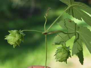 Long, large leafed vine that climbs over rocks and up into trees. It dies back each year to the ground. The female flowers are often called "cones" and are known as hops. They are used
